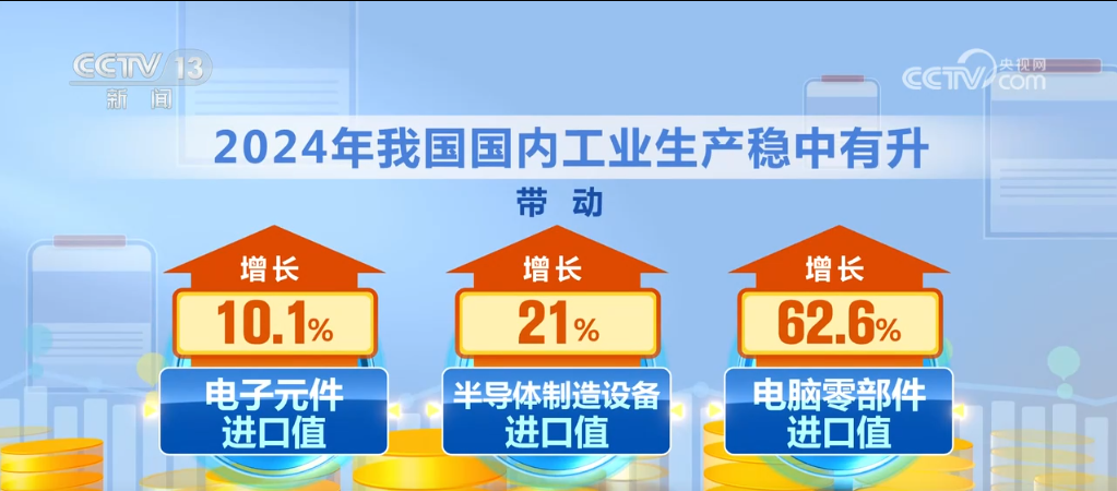 2024年,我国进口规模不竭扩大,不只满脚了国内出产需要,也丰硕了消费选择。客岁,我国国内工业出产稳中有升,带动电子元件、半导体系体例制设备、电脑零部件进口值别离增加10。1%、62。6%;铁矿砂、天然气、煤等大商品进口量别离添加4。9%、9。9%、14。4%。同期,我国很多平易近生消费品的进口需求较为兴旺,如服拆、生果、葡萄酒等进口值别离增加5。6%、8。6%、38。8%。