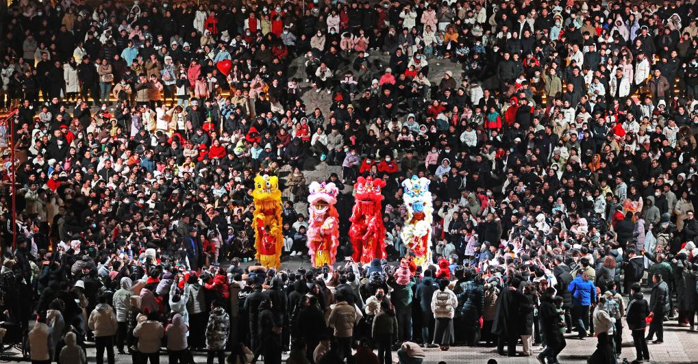 2025年1月29日,旅客正在临沂市郯城县郯国古城景区旁不雅舞狮表演。发(张春雷摄)从需求来看,消费品以旧换新政策加力扩围,春节期间旅逛文化体育市场火热,带动市场发卖回升和办事消费扩大,1至2月份社会消费品零售总额同比增加4%,增速比上年全年加速0。5个百分点。