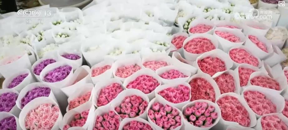 正在昆明一家花草商业公司,记者看到,工人们正加班加点对方才集中采购回来的康乃馨进行二次分级包拆。