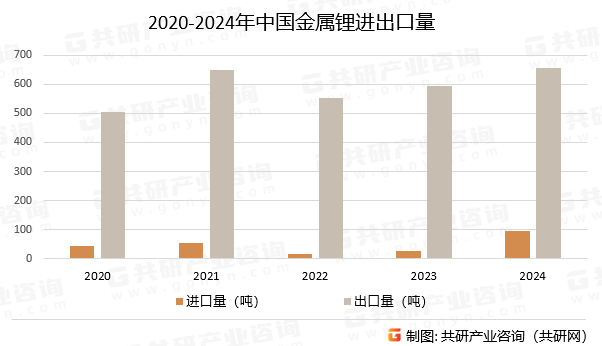 国内对锂资本的强劲需求,特别是新能源汽车和储能范畴对锂原料的火急需要。2024年,我国金属锂进口量为95。59吨,同比添加243。80%;金属锂出口量为655。24吨,同比添加10。31%。