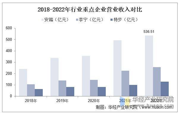 安踏集团是一家特地处置设想、出产、发卖活动鞋服、配饰等活动配备的分析性、多品牌的体育用品集团。2020年的净利润为51。62亿元,安踏创立于1991年,2007年正在上市。2018年安踏集团发卖流水跨越400亿人平易近币,同比增加跨越44。4%。2022年安踏的停业收入为536。51亿元。李宁无限公司次要于中华人平易近国(中国)处置体育相关的鞋类、服拆、器材及配件的品牌成长、设想、出产以及发卖营业;2022年李宁实现停业收入258。03亿元。
